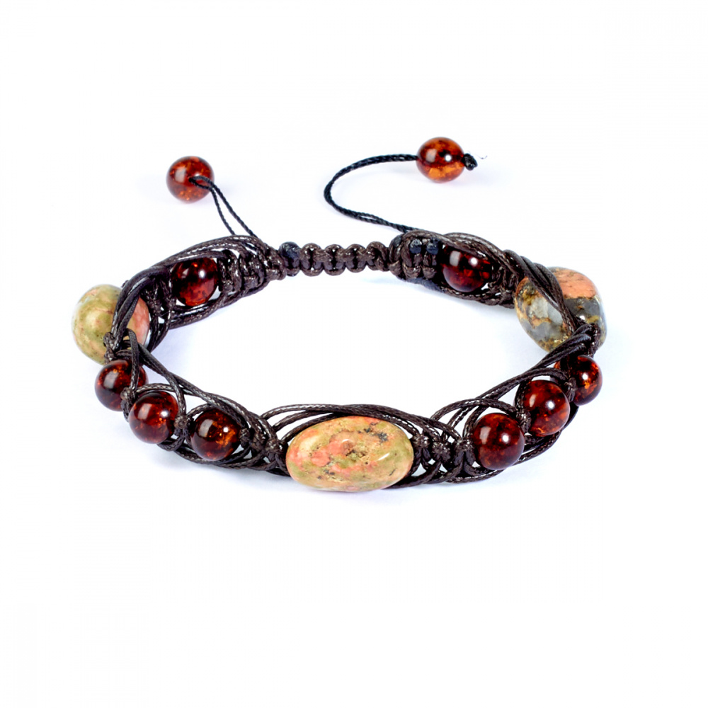Браслет мужской "Сила" из Янтаря и унакита