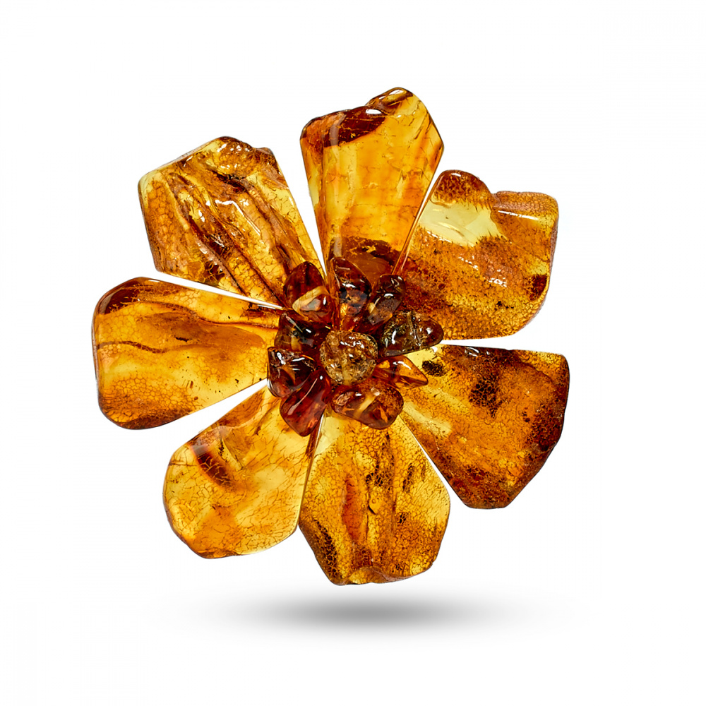 Брошь "Каменный цветок" из Янтаря