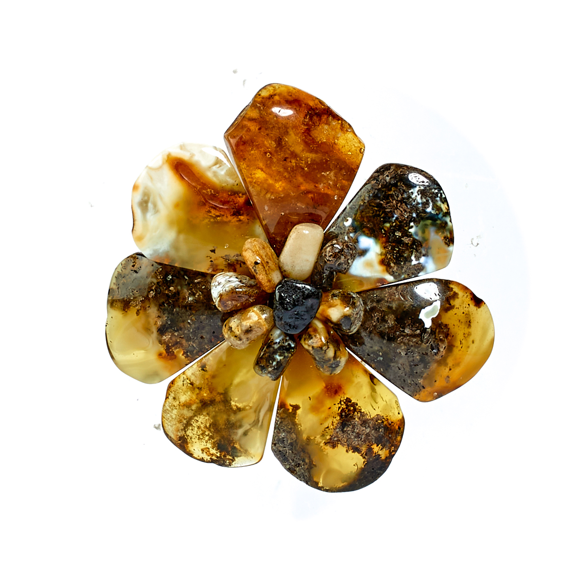 Брошь "Каменный цветок" из Янтаря