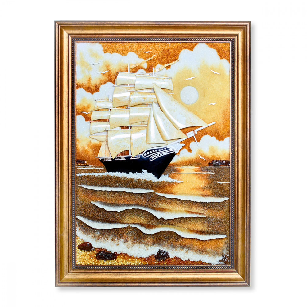 Картина "Парусник" объемная из Янтаря